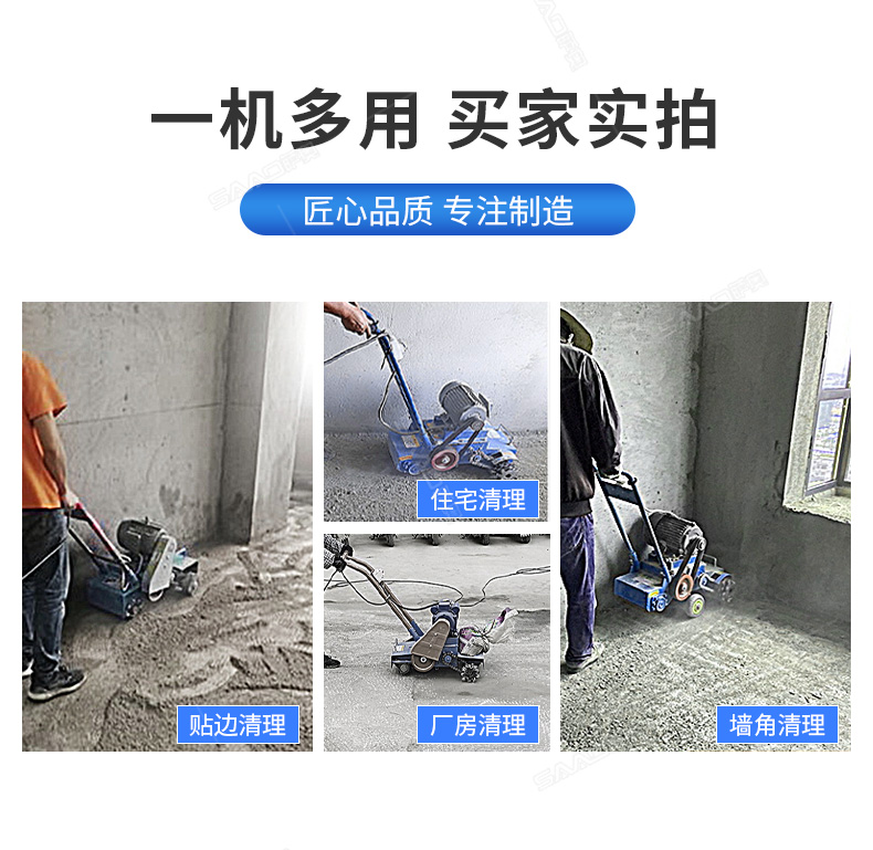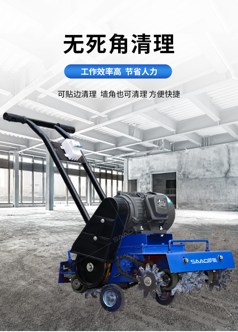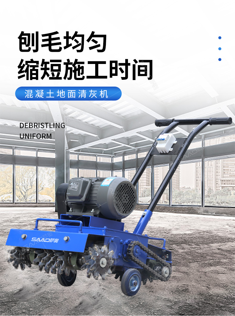產品用途: 清灰機,廣泛應用于建筑工程各樓層,用于清理落地灰渣和路橋工程泥漿平滑面打毛的專用設備。由于新建樓房在砌抹墻體頂棚中,失落在地面樓板上的混合沙漿凝固物,俗