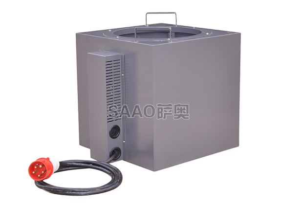2、通電預熱2-3分鐘即可工作,將材料桶輕放到脫桶機內。
