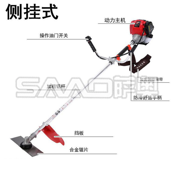 薩奧小型背負(fù)式多功能收割機廣泛用于,收割小麥、水稻、青稞、麻類、豆類等農(nóng)作物。換上相應(yīng)的刀具,裝上上下托板和安全的防護(hù)罩,還可以收割灌木、牧草、蘆葦及茶園枝頭修剪和花圃。小型收割機配帶汽油動力強勁有力,方便實用,效率高,便于攜帶及野外田地作業(yè)。突破了農(nóng)村無法進(jìn)入大型收割機收割的作業(yè)瓶頸,推進(jìn)了收獲作業(yè)的機械化,縮短了勞動周期,并讓人們從繁重的體力勞動解放出來。