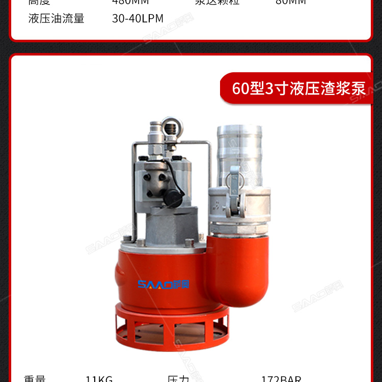 液壓渣漿泵大口徑排水可泵送1叿M大顆粒,鋁合金泵體鑄鉄葉輪,耐磨耐腐鉵